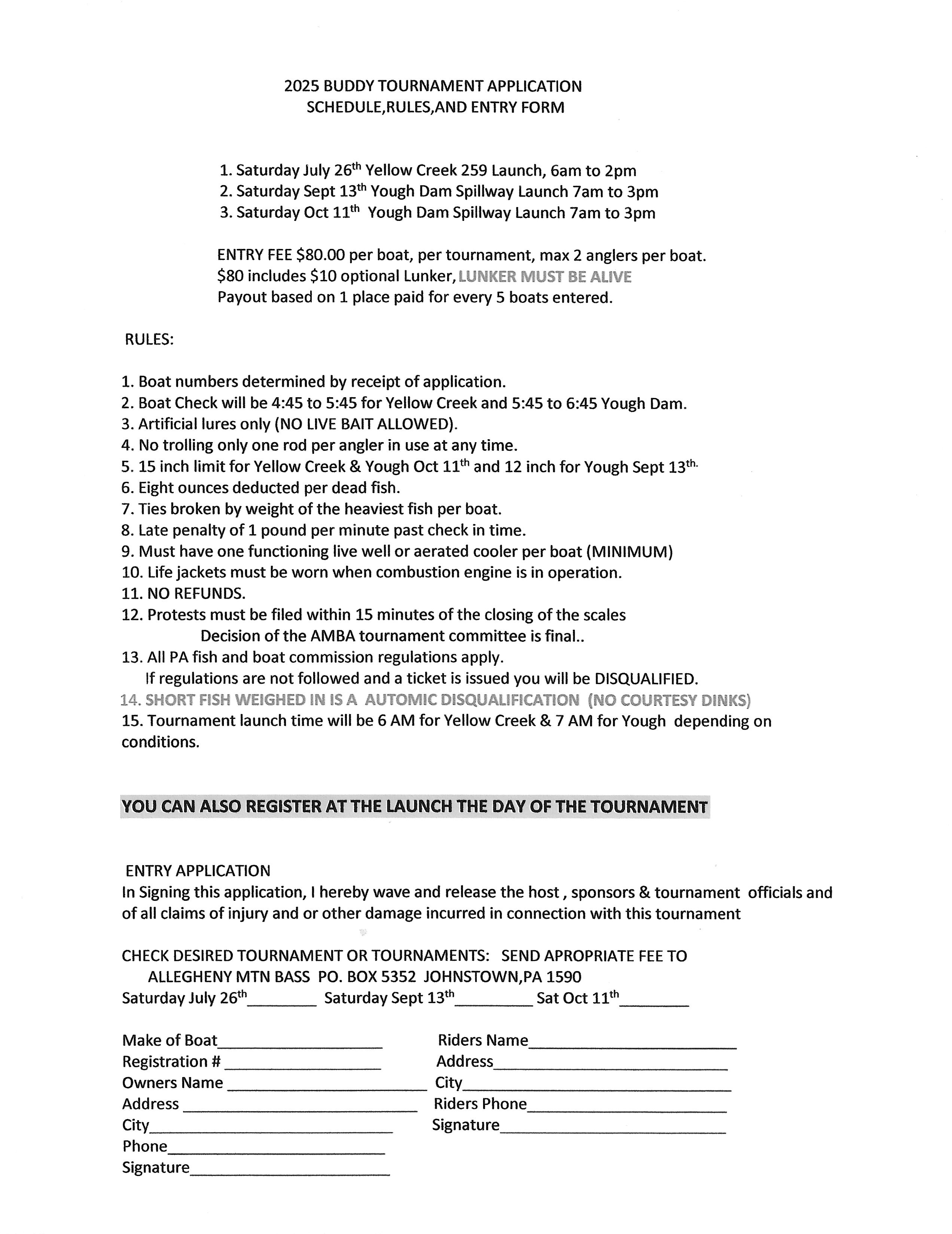 2025 Buddy Tournament Application & Schedule Share this: Click to share on X (Opens in new window) X Click to share on Facebook (Opens in new window) Facebook Click to share on Reddit (Opens in new window) Reddit Click to share on LinkedIn (Opens in new window) LinkedIn Like Loading...