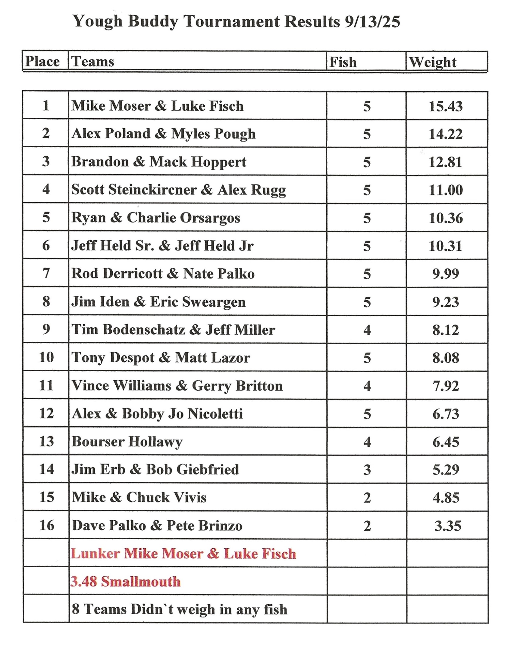 - Rod Derricott & Tim Bodenschatz 5 Fish 13.96